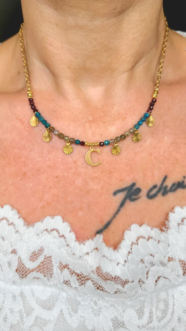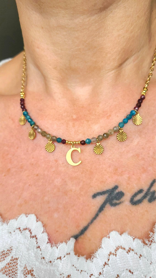 Collier Grenat, Apatite & Labradorite – Énergie & Équilibre - Personnalisable