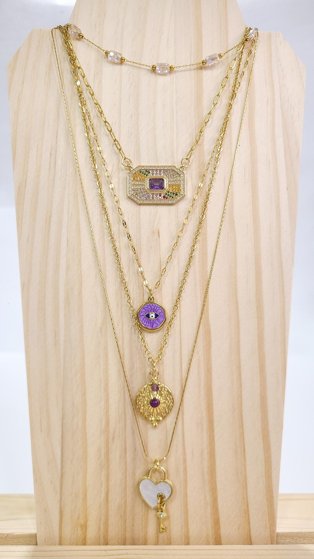 Son pendentif multicolore capture la lumière comme un souffle d’été lointain. Une invitation à rayonner et à laisser entrer la couleur dans vos instants quotidiens.